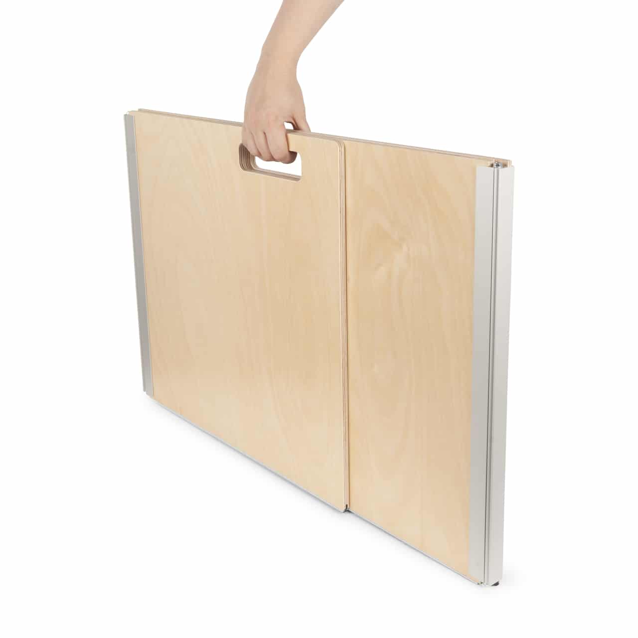 En aluminiumsprofil sikrer, at sidevæggene ikke kan åbnes mere end 95 grader, og en gummiprofil på undersiden sikrer, at denne Study Buddy altid står godt fast på bordet.