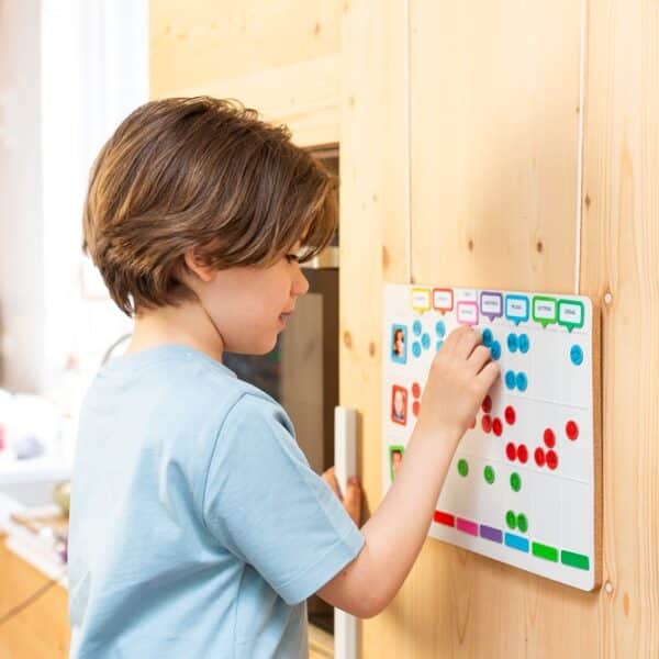Det er et muntert overblik, og med ekstra klistermærker kan dit barn også angive, om det f.eks. var en god dag eller ej,
