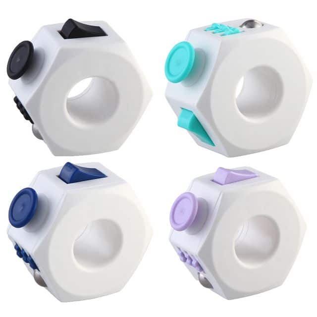 Now there is the fidget ring, it has the same options as the fidget cube. It only has the shape of a ring. So you can also switch, slide, click, turn, roll here.